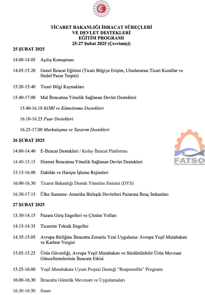 İhracat Süreçleri ve Devlet Destekleri Eğitim Programı 25-26-27 Şubat 2025