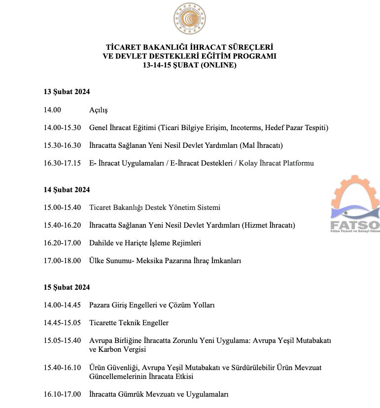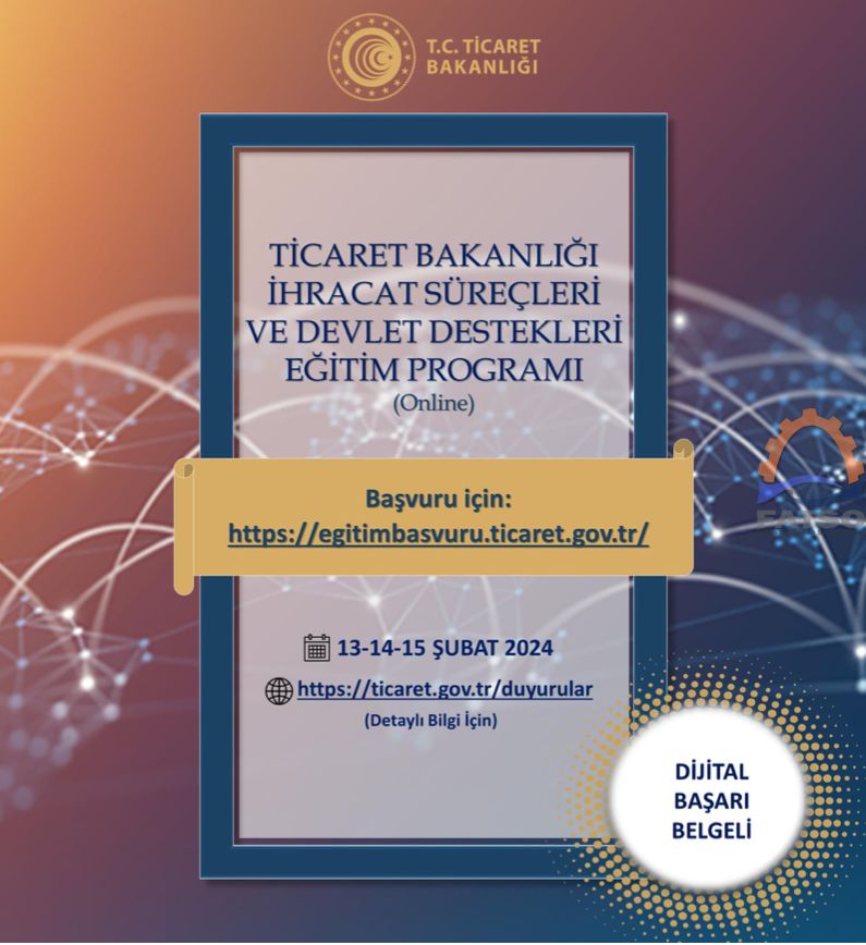 İhracat Süreçleri ve Yeni Nesil Devlet Destekleri Eğitim Programı 13-14-15 Şubat 2024